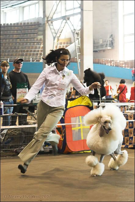 Вернувшись из Карпат, попал на съемку рпортажа с выставки собак в крытом велотреке СКА. Освещение там - как и во всех подобных постройках, мрачная смесь дневного и искусственного света, неравномерно перемешанных по площади арены. Тем не менее,  сюжеты попадаются замечательные, да и некоторые собаки (а также их владельцы, да и судьи) весьма любопытны. Попробую сгруппировать их в тематические серии, первая как раз и будет -